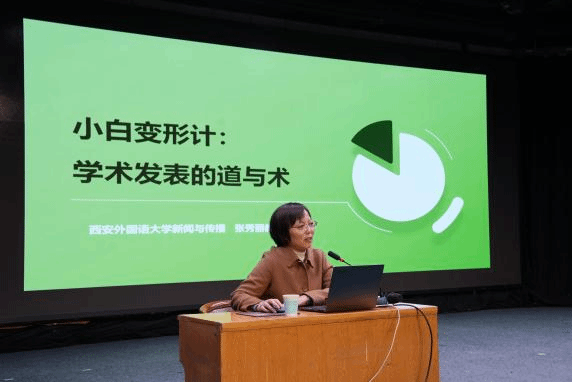 12月12日上午,我院特邀西安外国语大学新闻与传播学院张秀丽教授于科学会堂演播厅开展了以“小白变形记:学术论文的‘道’与‘术’”为题的学术讲座。本次讲座由传媒学院副教授康茜主持,学院新闻与传播、艺术学研究生参与。