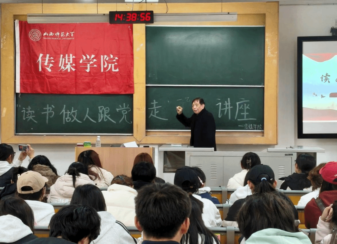 李振中老师以“读书铸就根基,做人涵养品格,跟党坚定方向”为主线,系统阐释了三者相融相生的深刻内涵。在论述读书之道时,李振中老师提出“勤以治学、专以精进、恒以持久、思以明辨”四维要义,为同学们指明了读书的重要性、必要性以及“志、识、恒”三大要素。接着,李振中老师强调,应当将个人理想融入民族复兴的伟大征程,以党的旗帜为指引,才能在时代洪流中找准人生坐标,实现生命价值。同时,李振中老师勉励同学们发扬“钉子精神”,在专业领域追求“深、精、通、坚”的卓越境界,以“腹有诗书气自华”的涵养与担当,肩负起传播真理、弘扬正义的媒体责任。